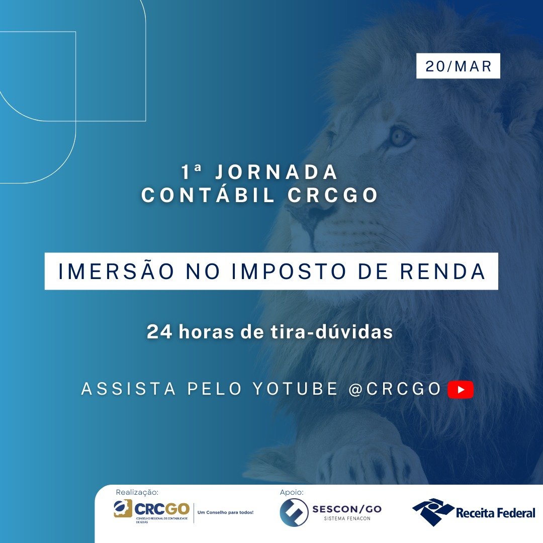 De forma gratuita e inédita, profissionais da contabilidade e contribuintes de todo o país poderão conhecer, na íntegra, as principais novidades do Imposto de Renda Pessoa Física (DIRPF) deste ano. O Conselho Regional de Contabilidade de Goiás (CRCGO), com o apoio do Sescon-Goiás e Receita Federal em Goiânia (RFB), realiza no próximo dia 20 de março, às 6h a 1ª Jornada Contábil CRCGO: Imersão no Imposto de Renda 2023. Pelo canal no YouTube da entidade, a transmissão se encerra às 5h59 da terça-feira (21/03).